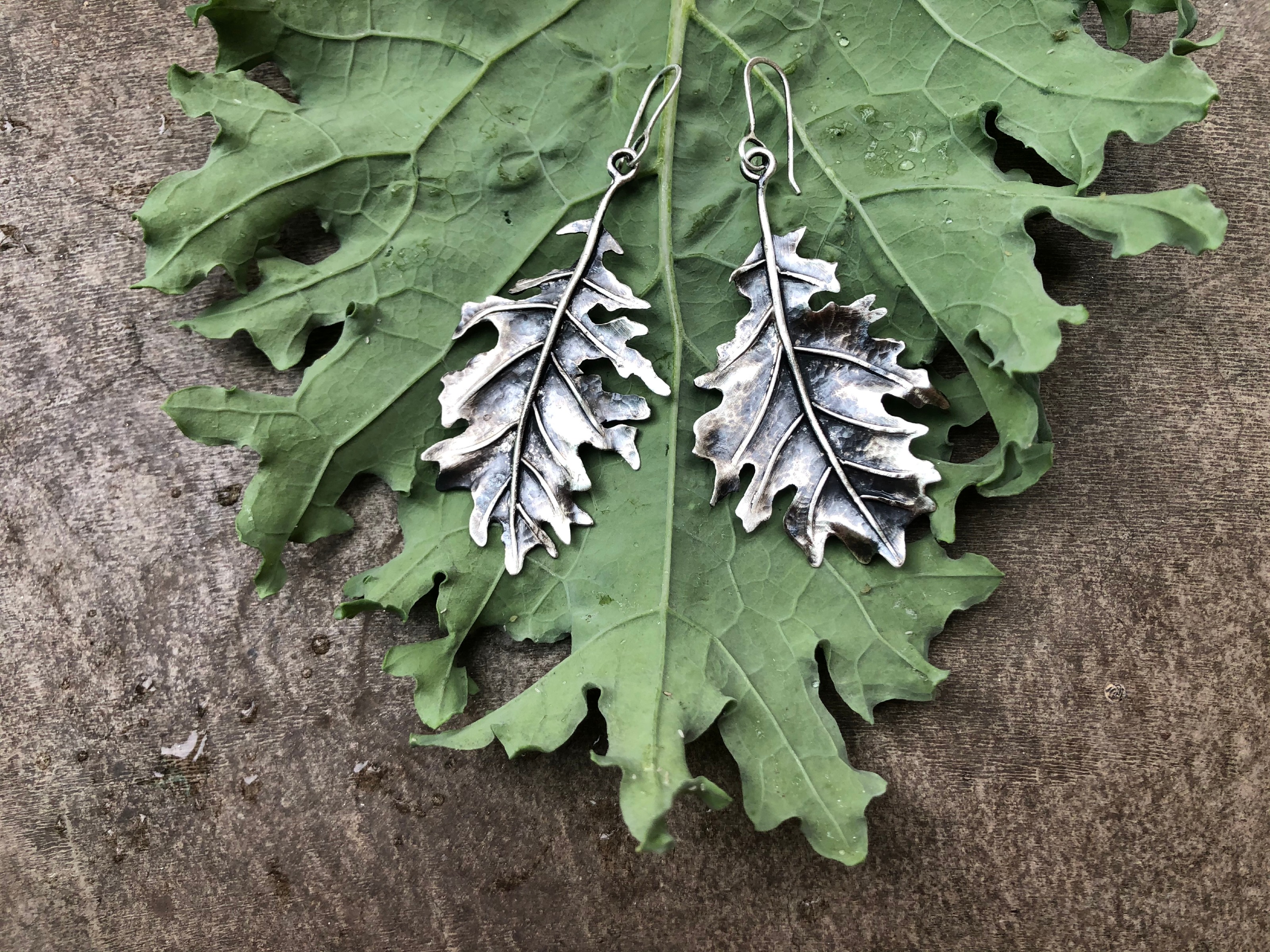 This is a detailed tutorial on how to fabricate a leaf with sterling silver sheet and wire. One-on-one meeting included. Intermediate level. SS sheet, gauge 24 or 22 Both 16 and 21 gauge SS wire Torch, pick, etc Flex shaft Easy solder Flush cutters A hammer and a set of texturing hammers or repousse chasing tools Separating disc Black silicone polishing disc Rubber cement An assortment of pliers