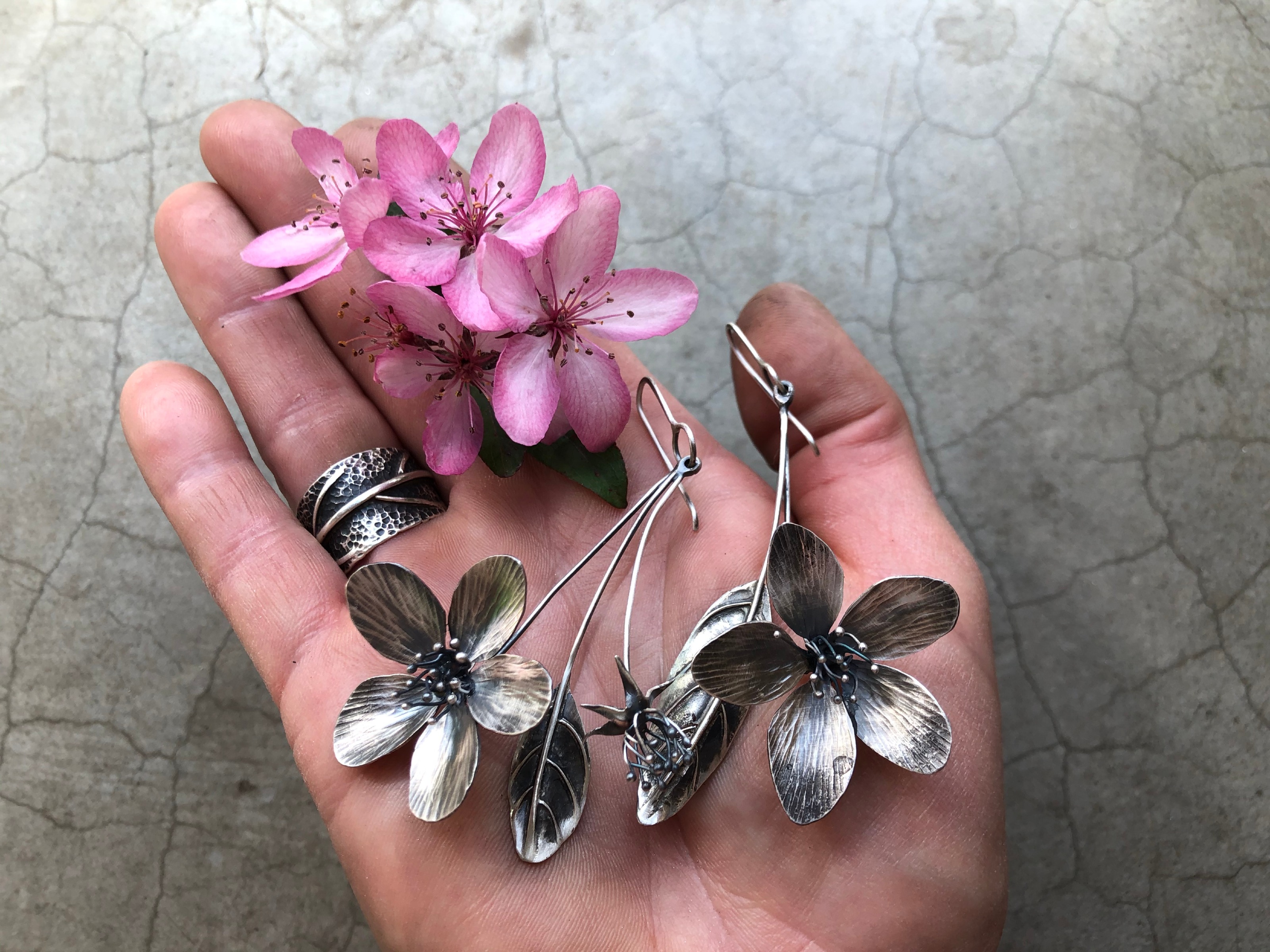 A detailed tutorial with a wide range of techniques involved in fabricating a flower. Also included is a 1-1 virtual class. Intermediate. 22 gauge SS sheet 5" gauge 20 SS wire 3" gauge 16 SS wire Torch, pick, etc Silquar soldering platform 3rd hands Easy, medium and hard solder Saw/blades Flex shaft Drill bit for 16 gauge wire Silicone polishing disc Optional: #12 Fretz hammer Disc cutter Dapping set